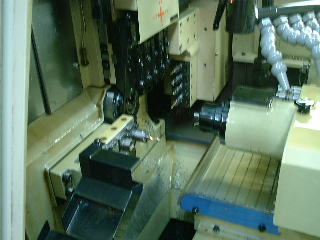 | これは、NC工作機械ではないですがセンターレス研磨機です。ドライブシャフトなどの外径を研磨する機械です。 | |