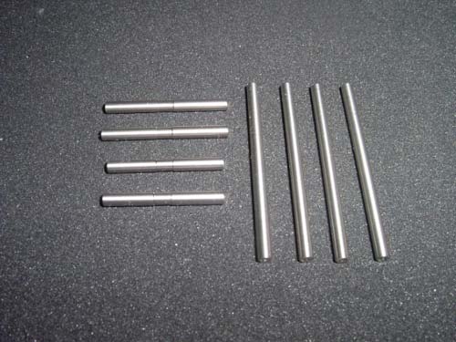 | ステンレスのサスピンを更に高強度にする為に、SCM415材に焼入れ処理をしました。熱処理メーカーとの協力とテストにより、曲がりにくく折れにくいサスピンを作りました。ステンレスと同様にネジズレ止め加工がしてあります。表面はブラック仕上げになっています。 (2004/06/24) |
